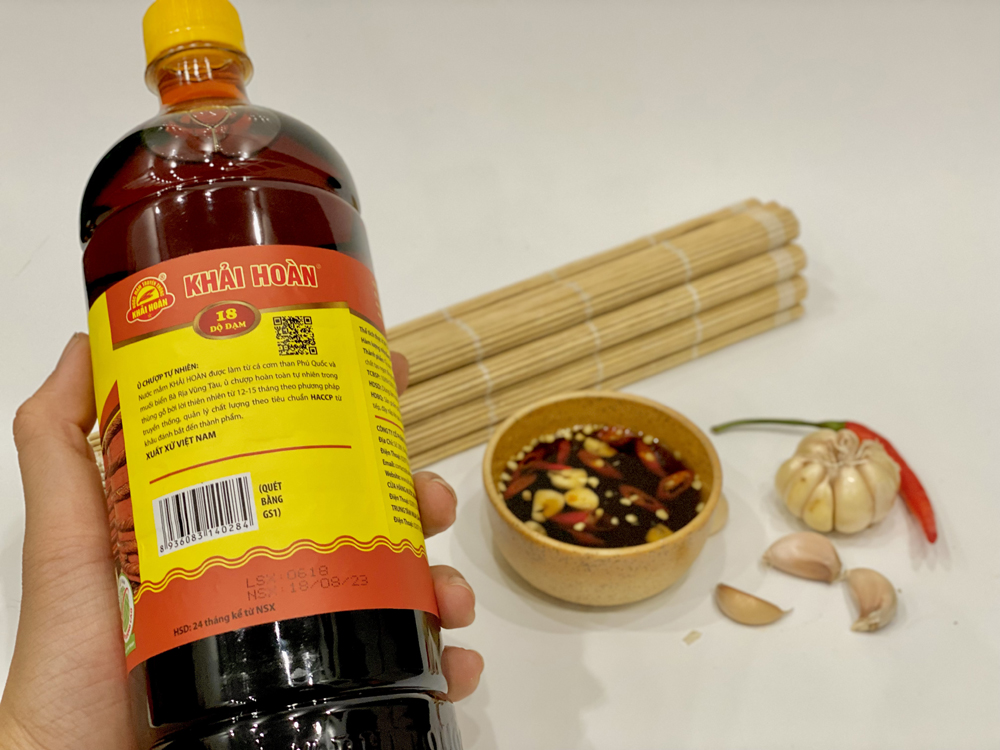 - Tên sản phẩm: Nước mắm truyền thống Khải Hoàn 18 độ đạm