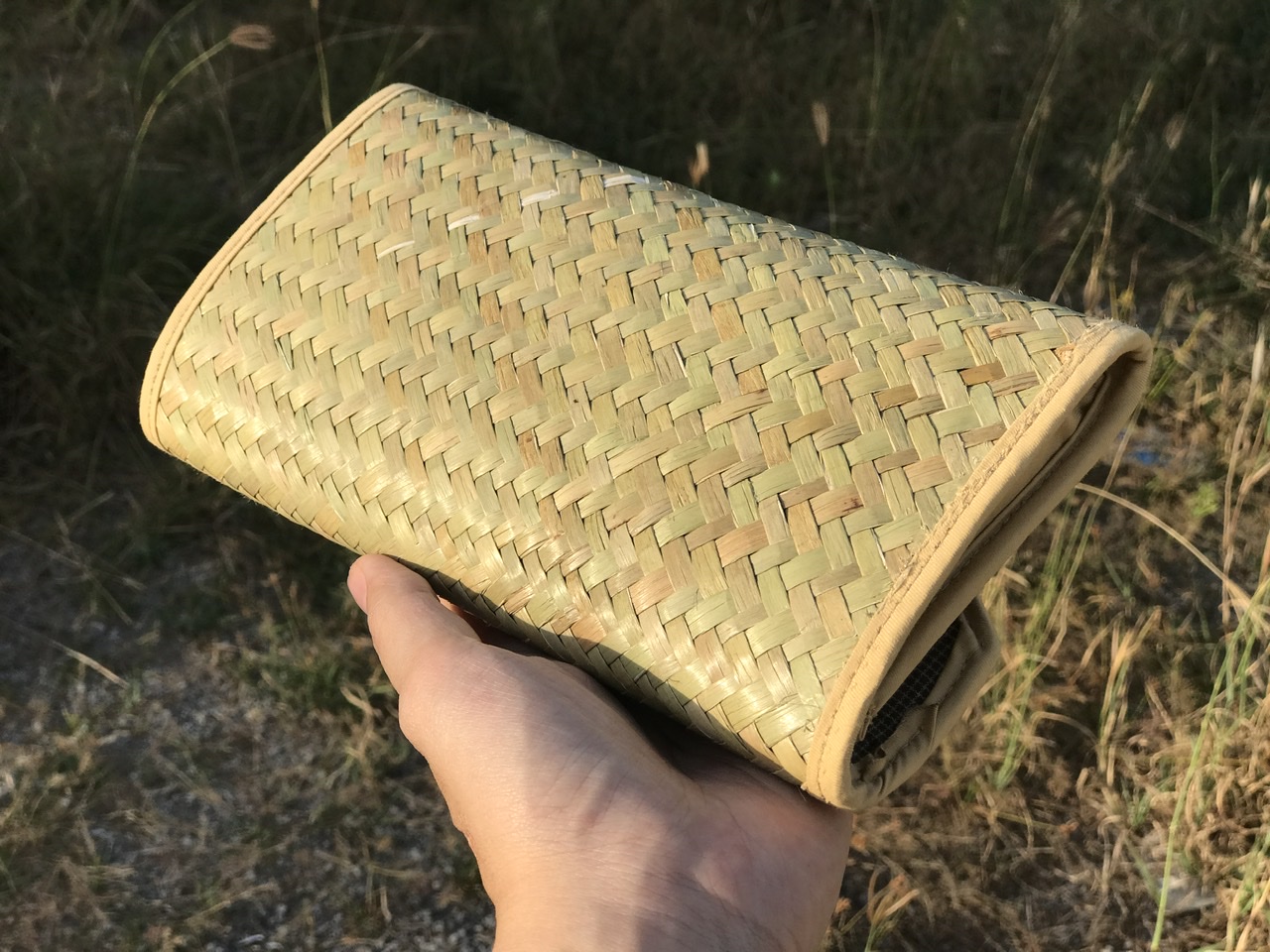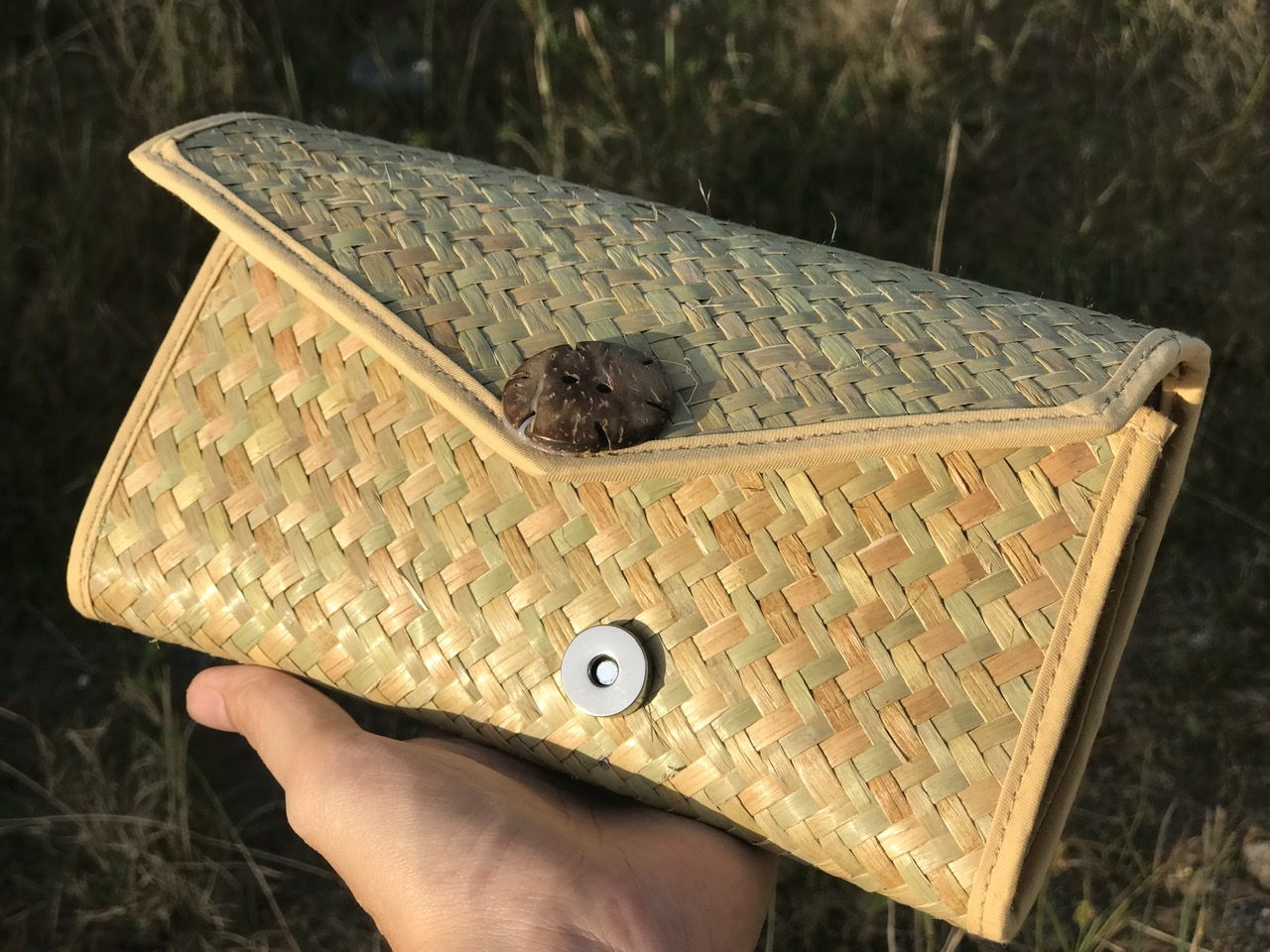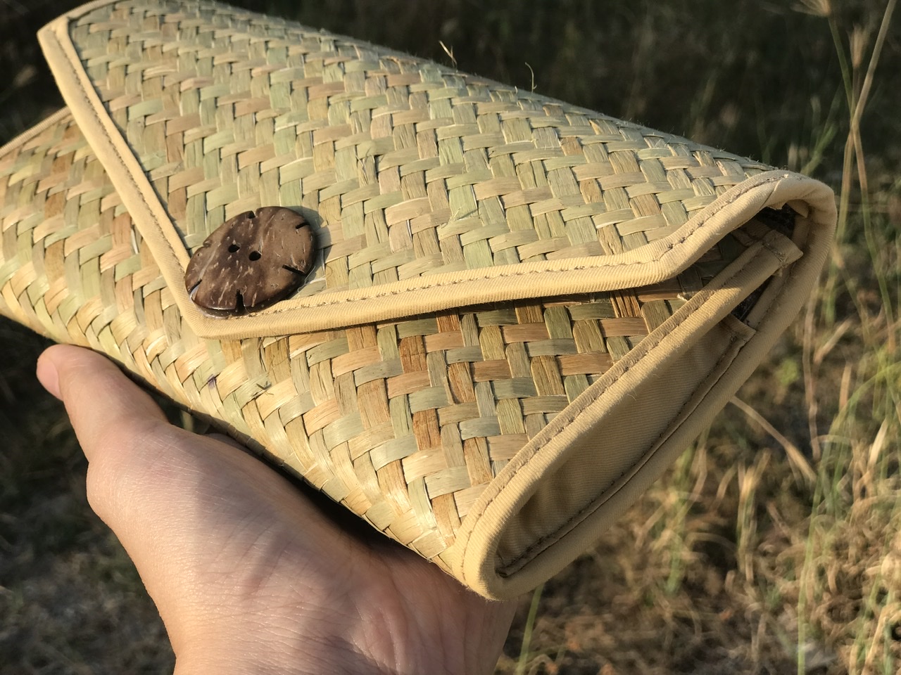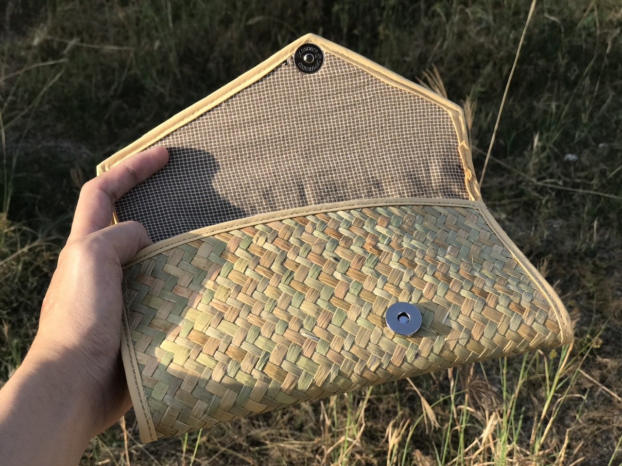 Ví cầm tay được làm từ cỏ bàng tự nhiên 100 được đan thủ công bởi người dân địa phương