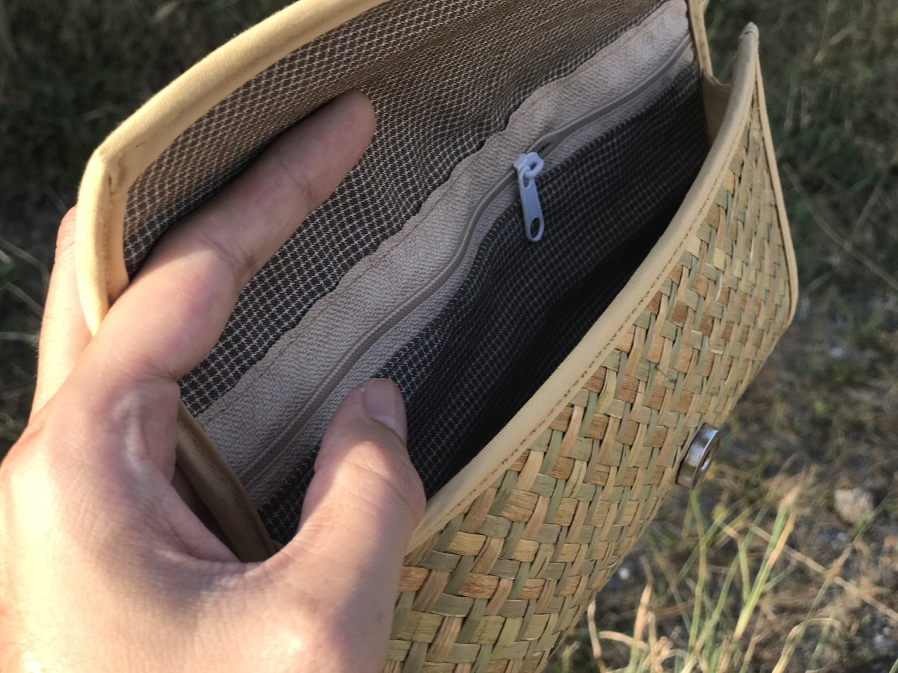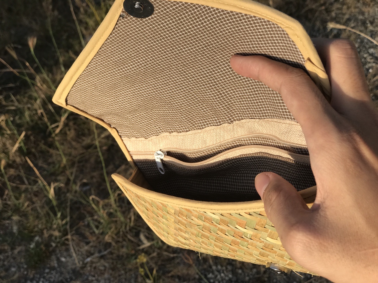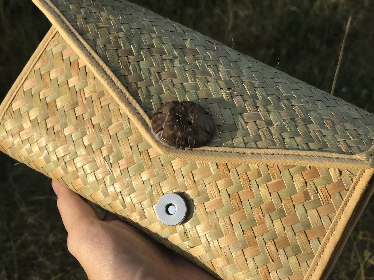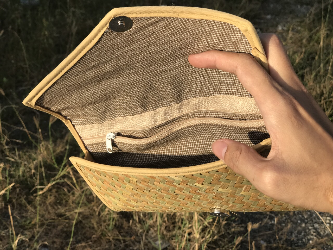 Ví cầm tay được làm từ cỏ bàng tự nhiên 100 được đan thủ công bởi người dân địa phương