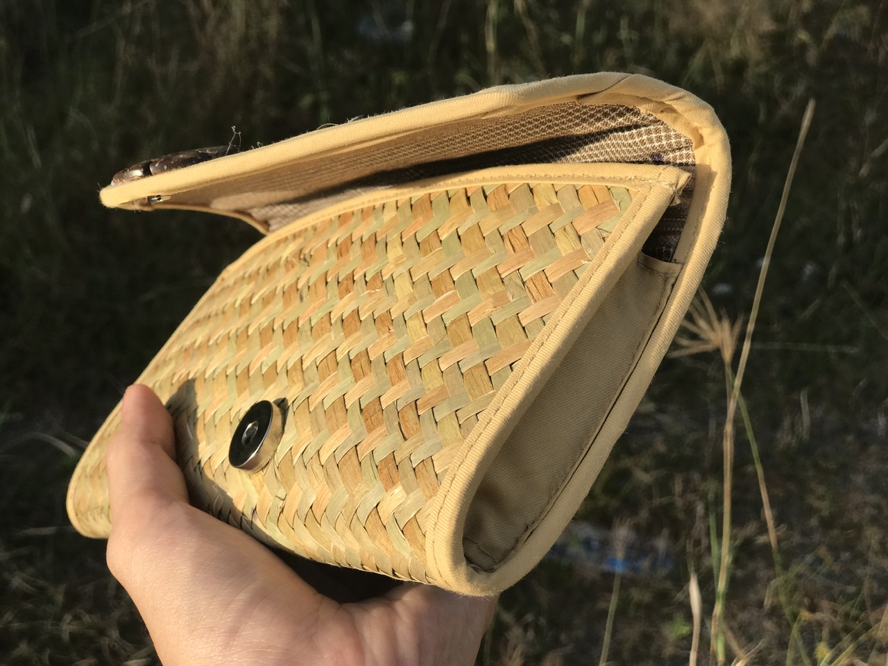 Ví bàng cầm tay có thiết kế hài hoà, với các đường đan chắc chắn tỉ mỉ. Màu sắc truyền thống, vô cùng phù hợp để mang đi bất cứ đâu. Đặc biệt là những nơi như chợ hoa, du lịch sinh thái,...