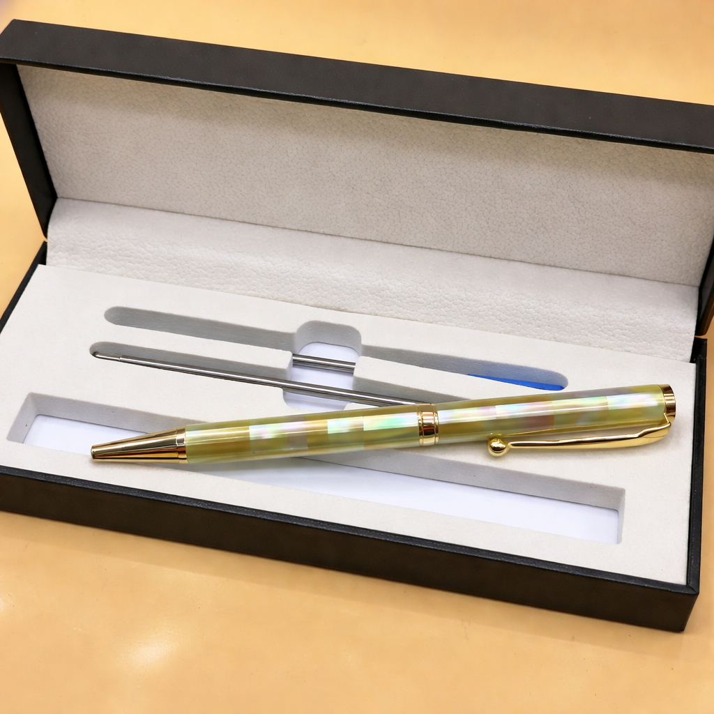 Bút Vỏ Trai là sự kết hợp tinh tế giữa thủ công mỹ nghệ truyền thống và giá trị thẩm mỹ tự nhiên, được chế tác từ vỏ trai chọn lọc với sắc ánh xà cừ độc đáo. Mỗi cây bút mang vẻ đẹp riêng biệt, phản chiếu ánh sáng mềm mại, sang trọng và đầy cuốn hút, không sản phẩm nào hoàn toàn giống sản phẩm nào.