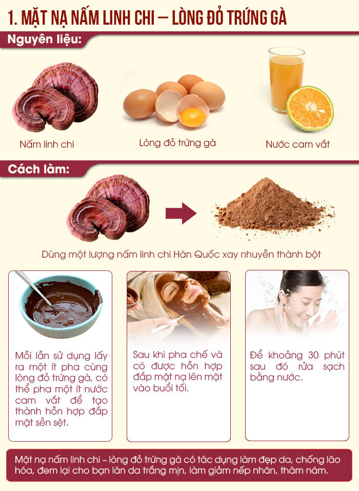 - Nấm linh chi cải thiện tuần hoàn ở da, khử gốc tự do ở da giúp nhuận da, mịn da. Linh chi còn giúp giảm đau ở bệnh nhân viêm khớp mạn.