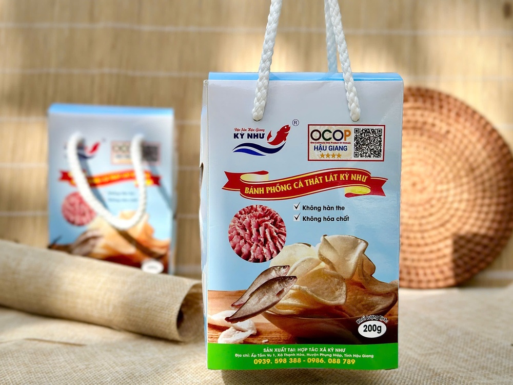 Bánh Phồng Cá Thát Lát Kỳ Như là đặc sản nổi tiếng của Hậu Giang, đạt danh hiệu OCOP 4 sao, không chứa hàn the hay hóa chất độc hại. Được chế biến từ cá thát lát tươi ngon và các nguyên liệu tự nhiên, sản phẩm mang đến hương vị thơm ngon, giòn rụm, là lựa chọn hoàn hảo cho bữa ăn nhẹ hoặc món ăn bổ dưỡng cho trẻ em.
