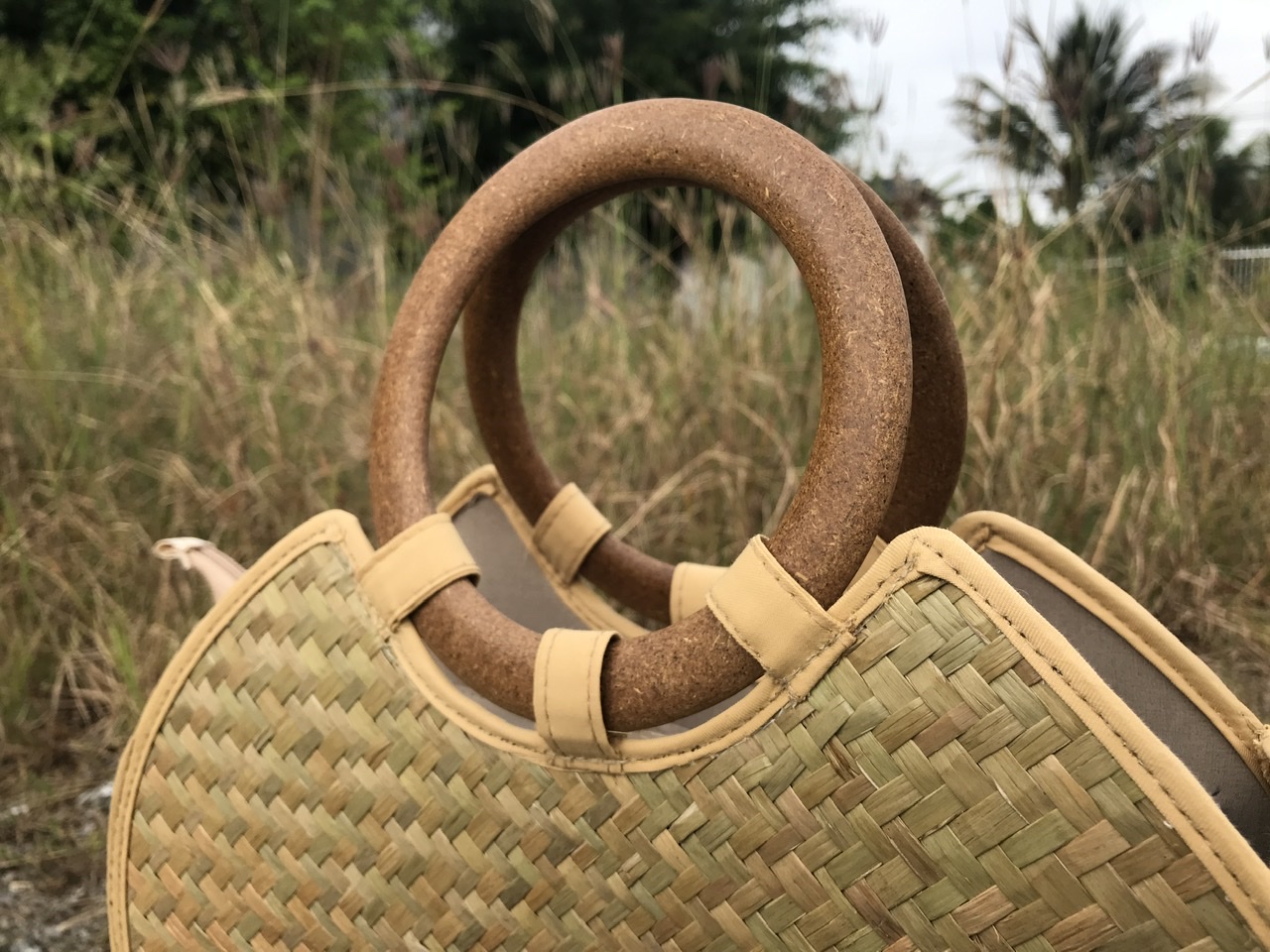 Điểm đặc biệt không kém chính là tay xách của giỏ, nó được thiết kế màu nâu đậm, kết hợp cùng màu nâu tự nhiên của cỏ bàng tạo nên sự đối lập hài hoà, sang trọng. Tay cầm có hình trọng, nói lên được nét mềm mại, uyển chuyển của người phụ nữ!