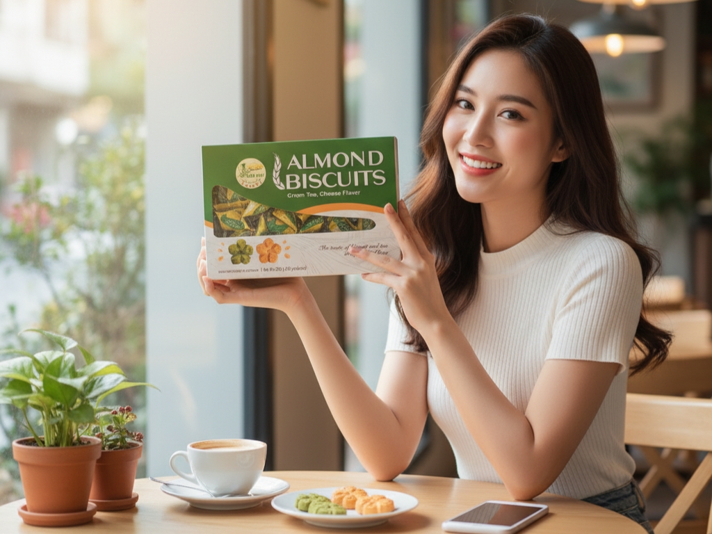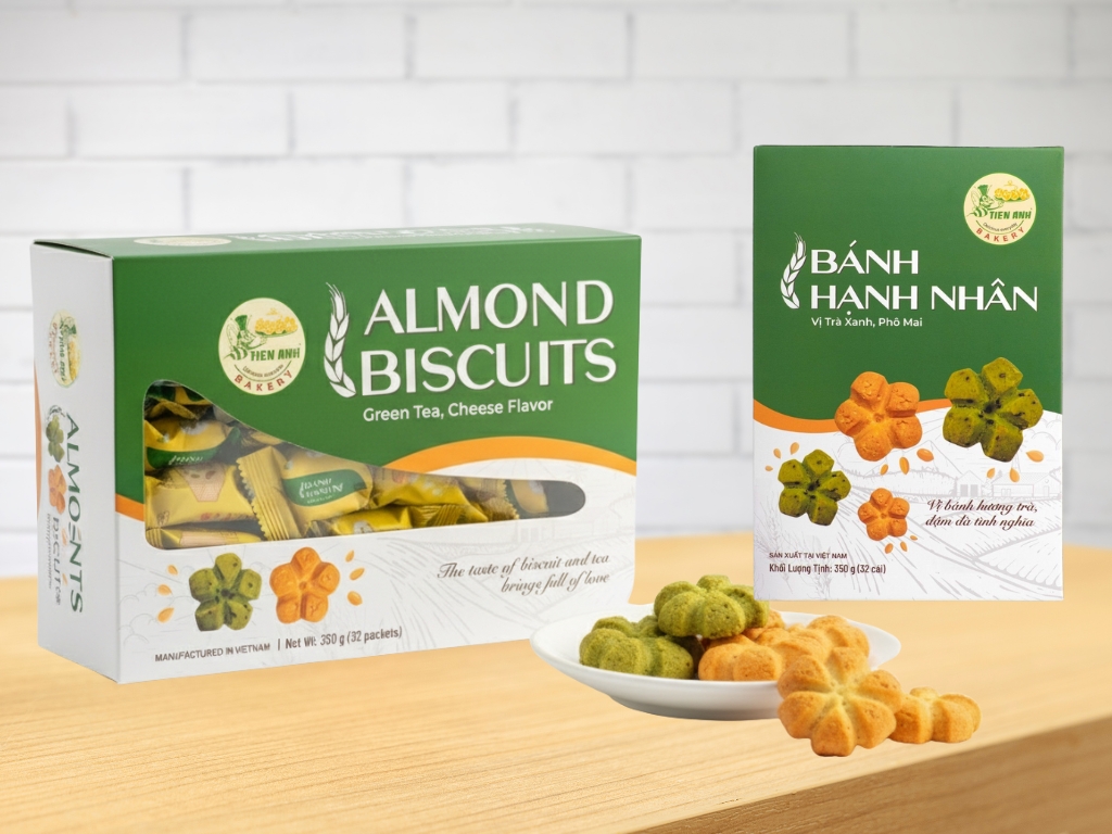 - Tên sản phẩm: Bánh Hạnh Nhân Trà Xanh Phô Mai Tiến Anh