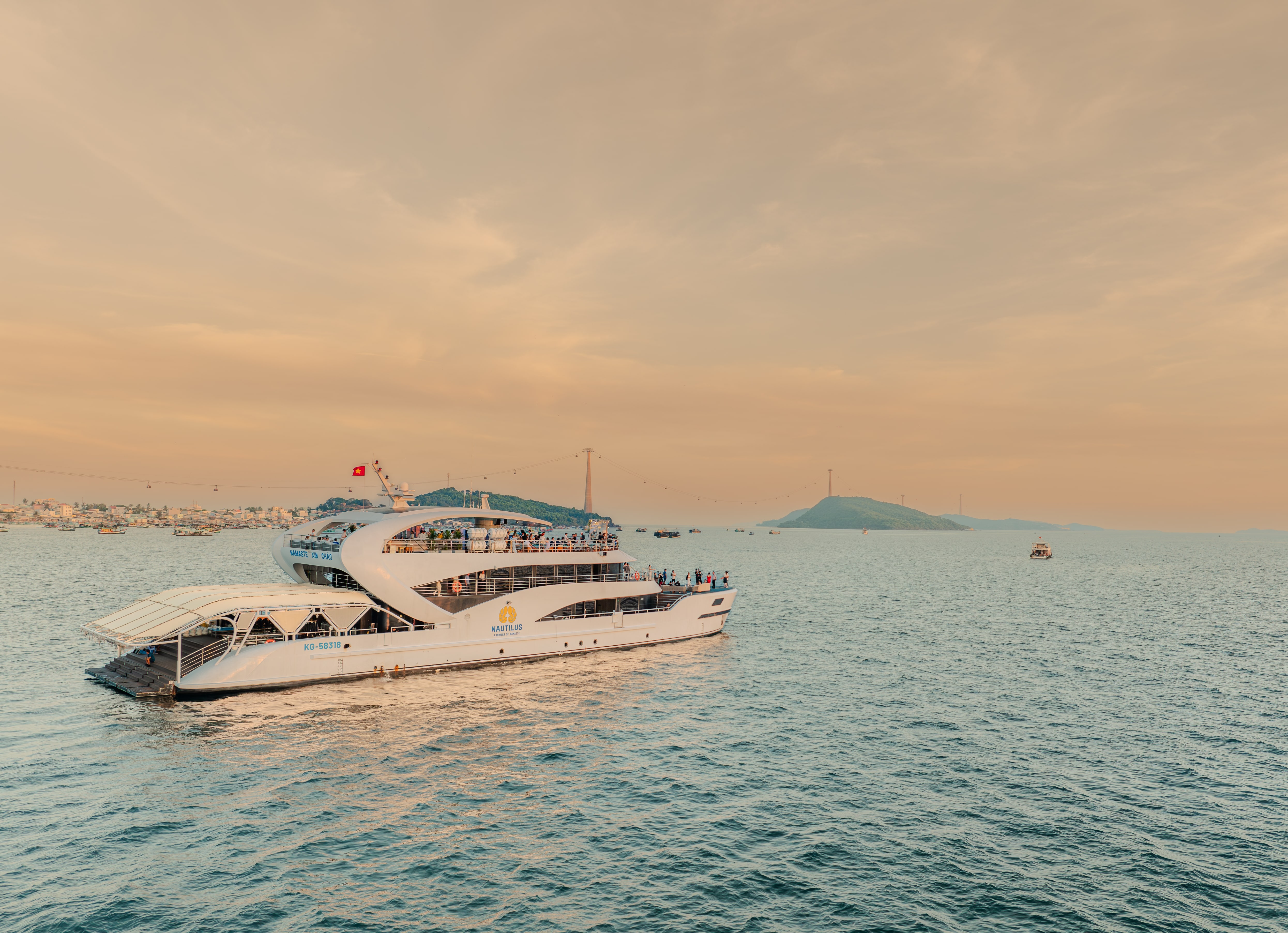 - Khi bước lên du thuyền Nautilus, du khách sẽ được chiêm ngưỡng thiết kế sang trọng với nội thất cao cấp, cửa sổ panorama nhìn ra biển, cùng không gian rộng rãi, tiện nghi.