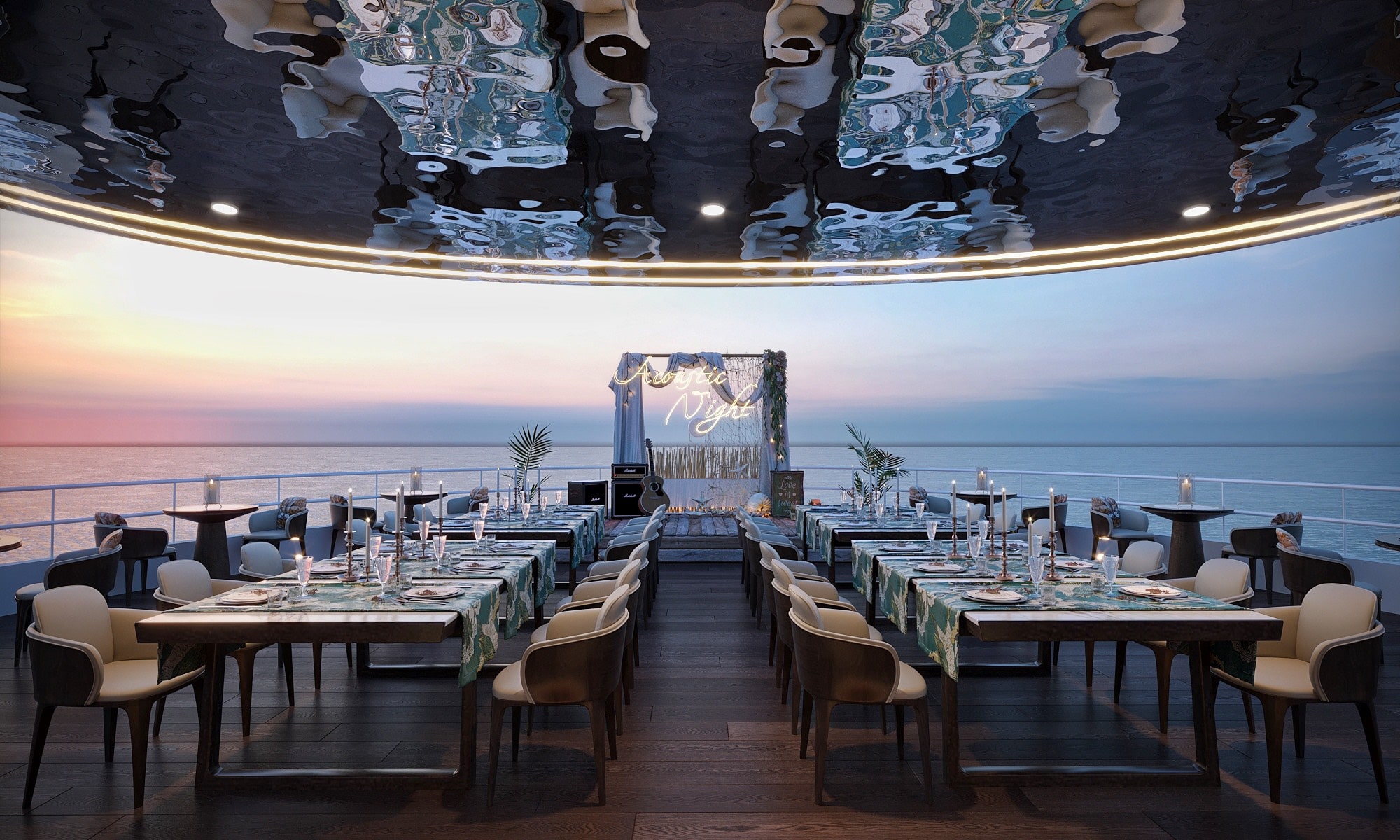 - Hành khách sẽ được phục vụ các bữa ăn do đầu bếp 5 sao chế biến, từ hải sản tươi sống đến các món ăn quốc tế cao cấp.