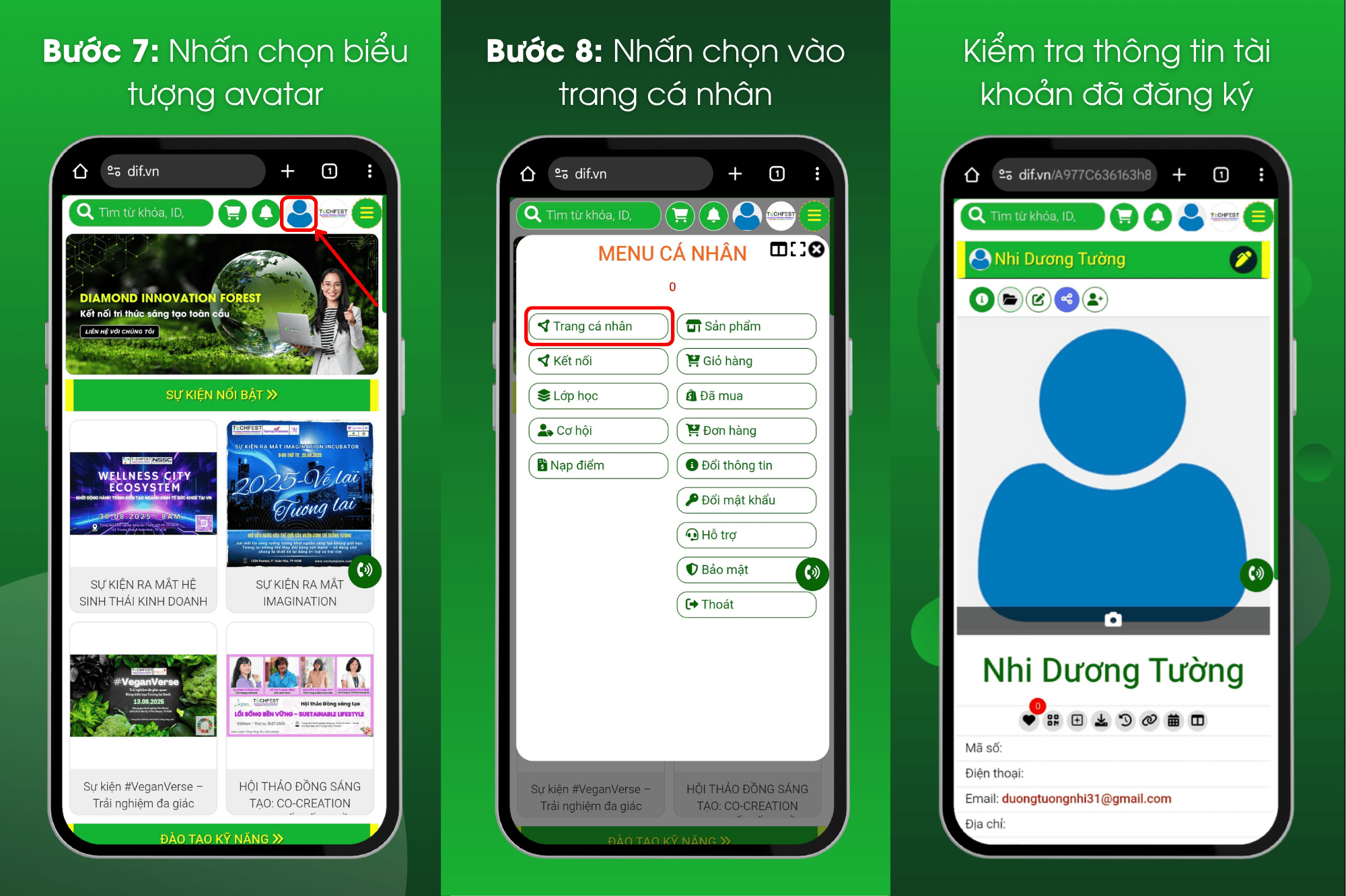 Bước 7: Khi được chuyển về website với giao diện như hình nghĩa là bạn đã đăng ký thành công, tiếp tục nhấn vào biểu tượng icon Avatar