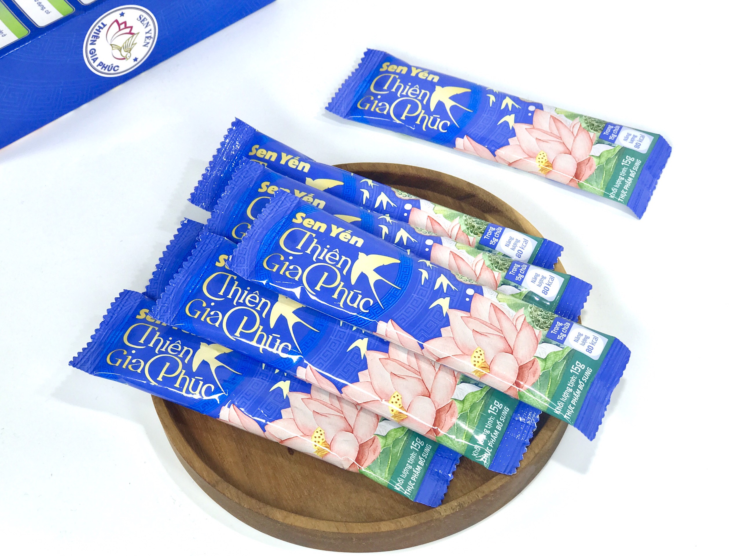 Sản phẩm Sen yến là sự kết hợp tuyệt vời, nhân 3 tác dụng nhờ các thành phần cực kỳ tốt cho sức khỏe là hạt sen tươi, sợi yến sào, và sữa thực vật. Sen yến được đóng thành các gói 15g nhỏ, rất dễ sử dụng và bảo quản.