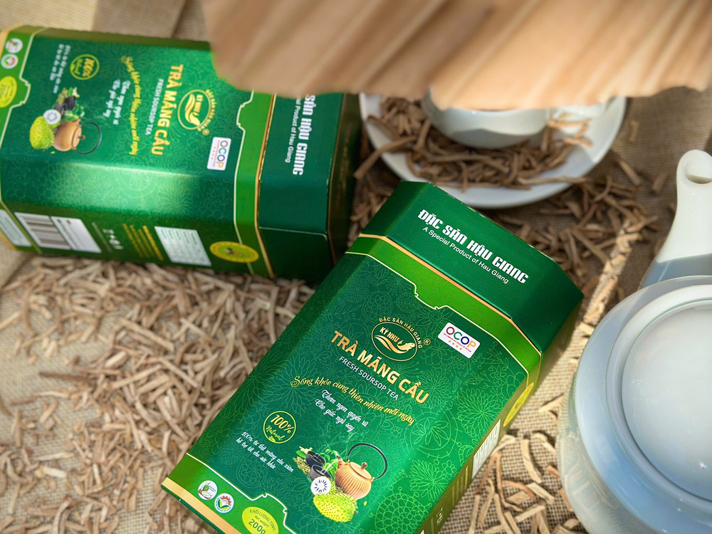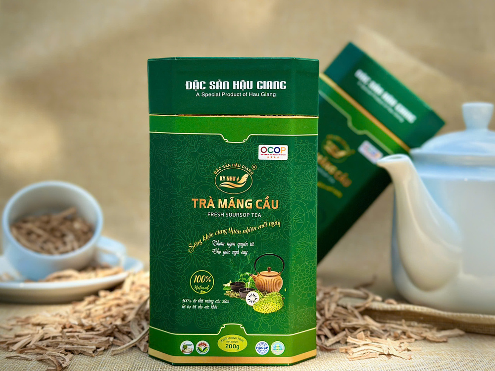 Trà mãng cầu Kỳ Như – đặc sản nổi tiếng từ Hậu Giang, kết hợp hoàn hảo giữa hương vị tự nhiên và giá trị dinh dưỡng quý giá. Được chế biến từ 100% thịt mãng cầu xiêm, trà không chỉ mang đến hương thơm nhẹ nhàng và vị chua ngọt hấp dẫn, mà còn hỗ trợ giấc ngủ sâu và cải thiện sức khỏe tổng thể. Với công nghệ sản xuất hiện đại và tiêu chuẩn GlobalGap, trà mãng cầu Kỳ Như hứa hẹn là người bạn đồng hành lý tưởng cho lối sống lành mạnh và thư giãn hàng ngày.