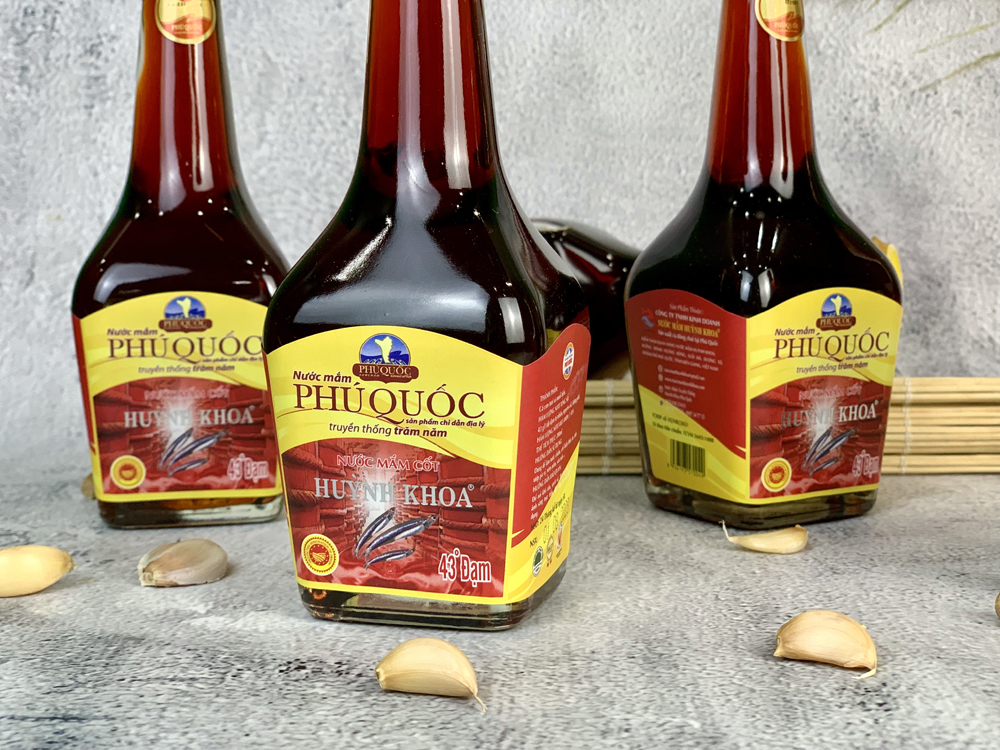 Nước Mắm Cốt Nhĩ Truyền Thống CDĐL Phú Quốc Huỳnh Khoa là một sản phẩm đặc sản của vùng biển đảo ngọc Phú Quốc xinh đẹp. Sản phẩm được sản xuất theo phương pháp truyền thống trong dây chuyền khép kín, ngoài ra sản phẩm còn đạt được chỉ dẫn địa lý do liên minh 28 nước Châu Âu công nhận. Đây là một sản phẩm được sản xuất và đóng chai tại Phú Quốc cùng hơn 100 năm sản xuất nước mắm truyền thống “không chất bảo quản, không chất điều vị” được sử dụng 100% chất lượng từ các tự nhiên và muối cho nên sản phẩm đưa ra luôn đạt các tiêu chí đề ra về chất lượng độ ngon nhờ vào phương pháp truyền thống được truyền bao đời.