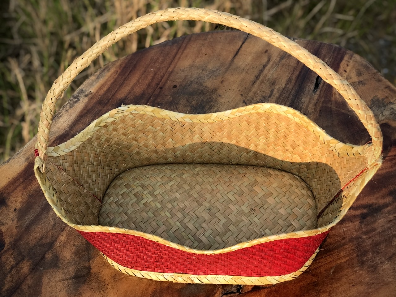 Thêm vào đó, thành của giỏ được thiết kế uốn lượn, làm toát lên vẻ mềm mại, uyển chuyển. Cùng với sự kết hợp màu sắc hài hòa giữa màu sắc truyền thống của cỏ bàng cùng màu đỏ bắt mắt tạo thêm sự hiện đại xen kẻ truyền thống cho giỏ.