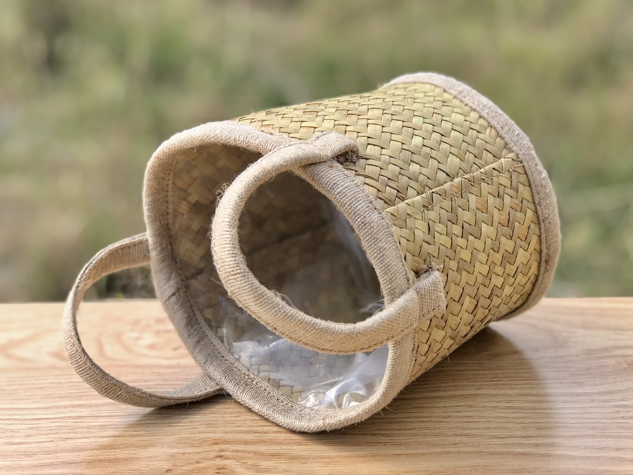 Giỏ được làm từ cây bàng cói và lục bình tự nhiên Được đan thủ công từ những nghệ nhân trong vùng