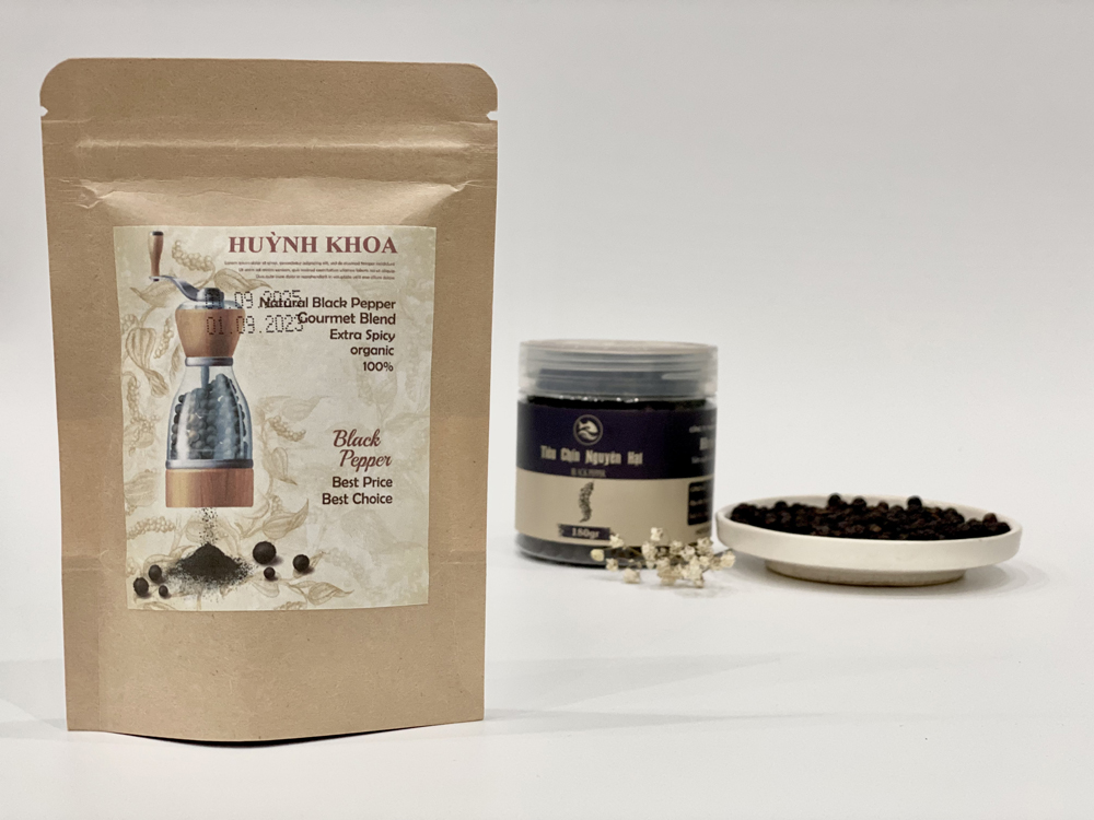 Tiêu Đen Nguyên Hạt Huỳnh Khoa Túi 55gr - Đặc Sản Phú Quốc