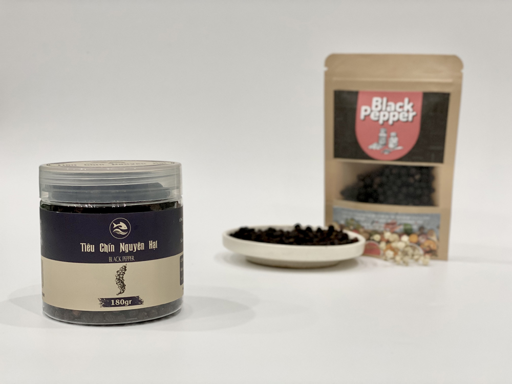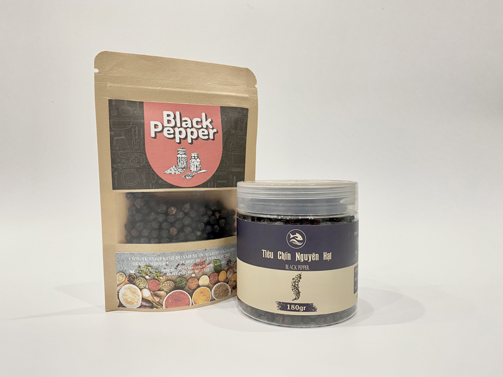 Tiêu chín nguyên hạt là kết quả của quá trình lựa chọn và thu hái cẩn thận sau đó được sấy khô tỉ mỉ trước khi được đóng gói giữ nguyên hạt Khi sử dụng loại tiêu này sẽ mang đến cho khách hàng một cảm giác cay nồng đậm đà và hương vị đầy tinh tế