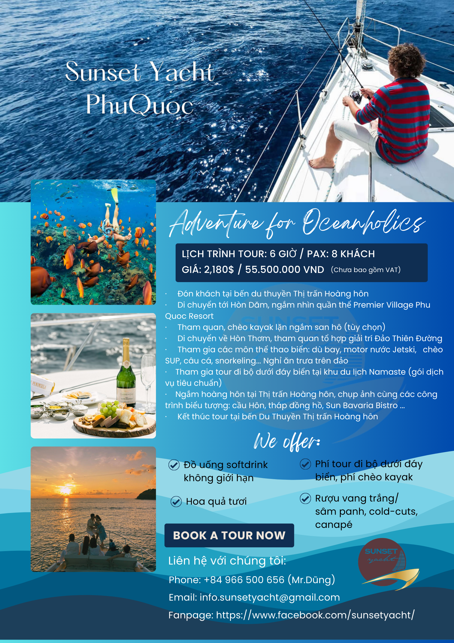 Một chuyến du ngoạn biển sang trọng và đầy ấn tượng có phải là điều bạn đang tìm kiếm không Vậy thì Du thuyền riêng tham quan của chúng tôi chắc chắn sẽ mang đến cho bạn những trải nghiệm đẳng cấp trong không gian riêng tư và dịch vụ chuyên nghiệp để bạn
