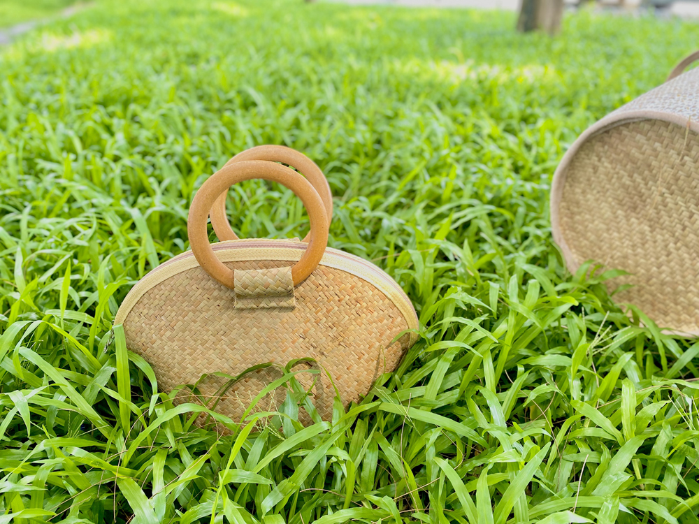 Balo Bàng được làm từ cây bàng cói và lục bình tự nhiên Được đan thủ công từ những nghệ nhân trong vùng